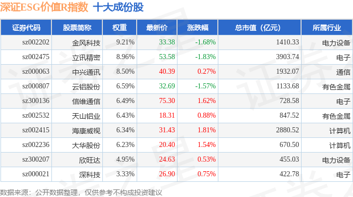 深证ESG价值R(470061)指数十大成份股详情如下: