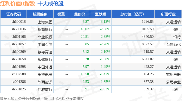 红利价值R(489016)指数十大成份股详情如下: