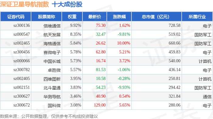 深证卫星导航(970050)指数十大成份股详情如下: