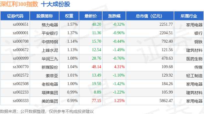 深红利300(970062)指数十大成份股详情如下: