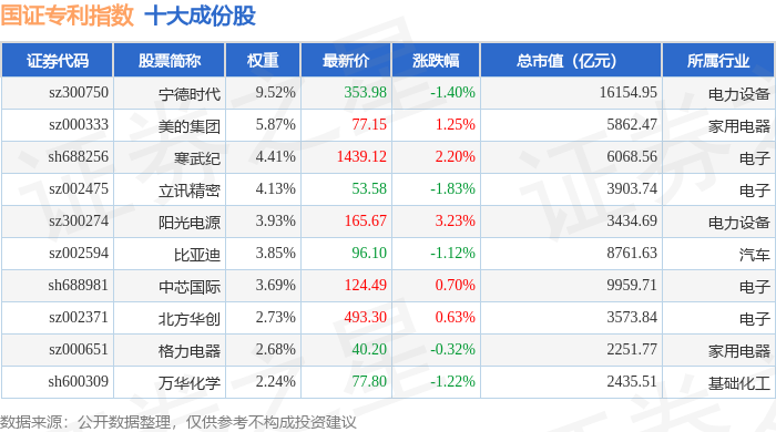 国证专利(980070)指数十大成份股详情如下: