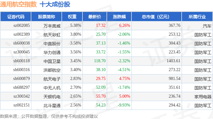 通用航空(980076)指数十大成份股详情如下:
