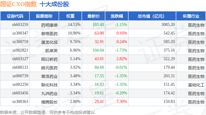 证券之星消息,1月14日,国证CXO(980120)指数报收于1991.15点,涨0.59%,成交342.47亿元,换手率5.77%。当日该指数成份股中,上涨的有17家,诺思格以19.25%的涨幅领涨,下跌的有23家,益诺思以6.45%的跌幅领跌。