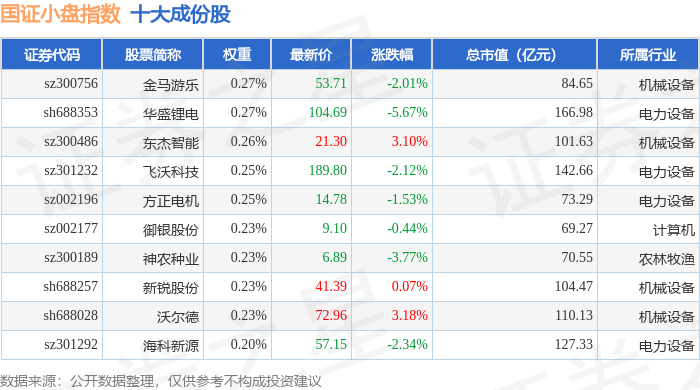 国证小盘(980202)指数十大成份股详情如下: