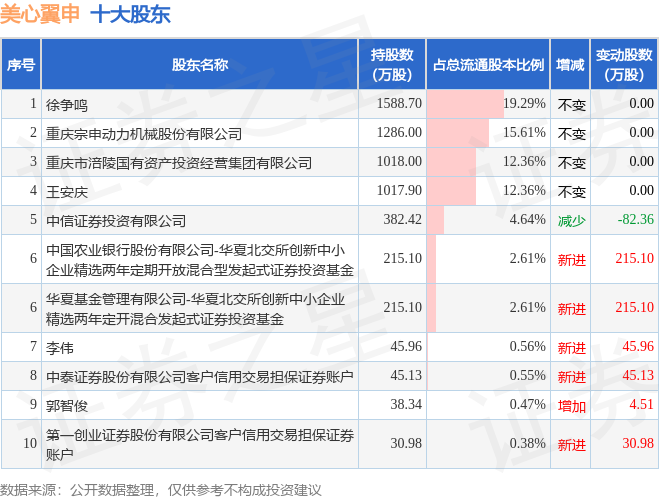 根据美心翼申2025年三季报公布的十大股东详情如下: