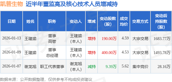 凯普生物近半年内的董监高及核心技术人员增减持详情如下: