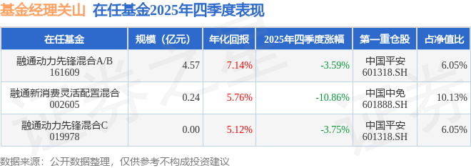 证券之星消息,截止2025年四季度末,基金经理关山旗下共管理3只基金,本季度表现最佳的为融通动力先锋混合A/B(161609),季度净值跌3.59%。