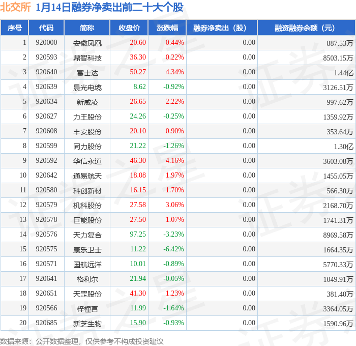北交所融券净卖出前三分别为:None,前20具体见下表: