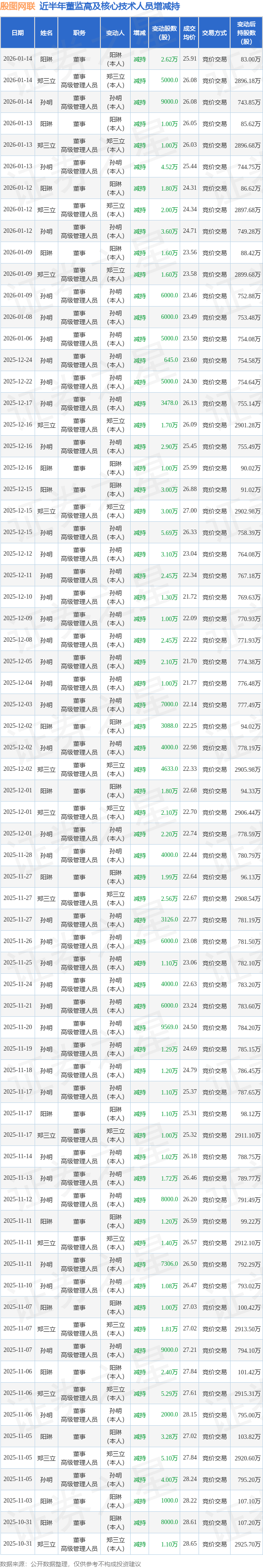 殷图网联近半年内的董监高及核心技术人员增减持详情如下: