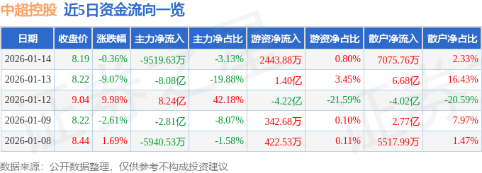 1月14日的资金流向数据方面,主力资金净流出9519.63万元,占总成交额3.13%,游资资金净流入2443.88万元,占总成交额0.8%,散户资金净流入7075.76万元,占总成交额2.33%。
