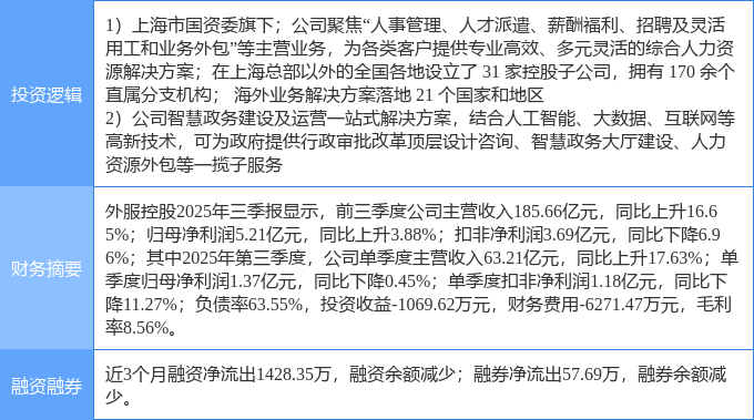 证券之星估值分析提示外服控股行业内竞争力的护城河一般,盈利能力优秀,营收成长性一般,综合基本面各维度看,股价合理。 更多>>