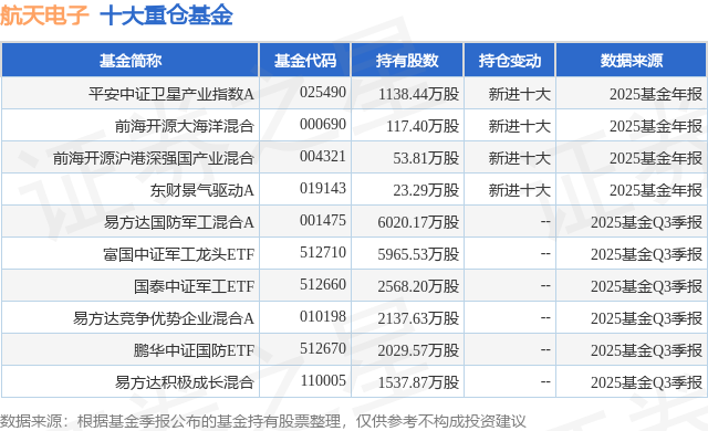 重仓航天电子的前十大公募基金请见下表: