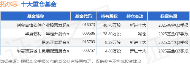 重仓拓尔思的公募基金请见下表: