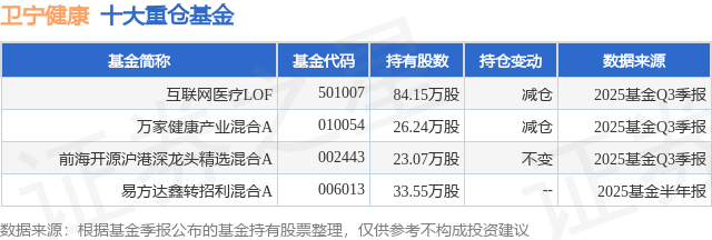 根据2025基金Q3季报公募基金重仓股数据,重仓该股的公募基金共3家,其中持有数量最多的公募基金为汇添富基金的互联网医疗LOF。互联网医疗LOF目前规模为0.7亿元,最新净值1.1113(1月14日),较上一交易日上涨2.49%,近一年上涨36.04%。该公募基金现任基金经理为吴振翔。吴振翔在任的基金产品包括:汇添富上证综合指数A,管理时间为2010年2月6日至今,期间收益率为96.64%;汇添富沪深300安中指数A,管理时间为2013年11月6日至今,期间收益率为210.25%;汇添富中证精准医疗指数(LOF)C,管理时间为2016年1月21日至今,期间收益率为6.44%;汇添富中证上海国企ETF,管理时间为2016年7月28日至今,期间收益率为11.81%。