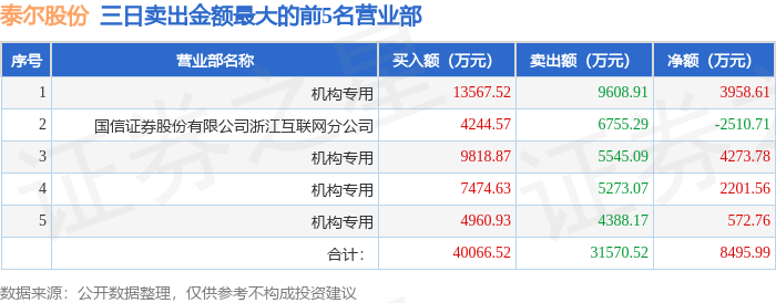 证券之星消息,沪深交易所2026年1月15日公布的交易公开信息显示,泰尔股份(002347)因连续三个交易日内,跌幅偏离值累计达到20%的证券登上龙虎榜。此次是近5个交易日内第1次上榜。