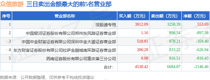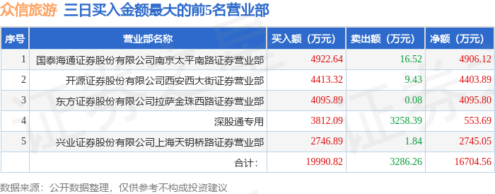 证券之星消息,沪深交易所2026年1月15日公布的交易公开信息显示,众信旅游(002707)因连续三个交易日内,涨幅偏离值累计达到20%的证券登上龙虎榜。此次是近5个交易日内第1次上榜。