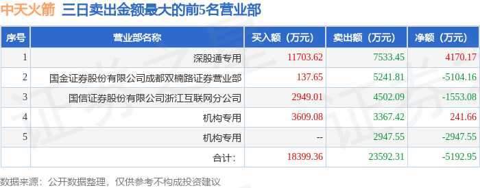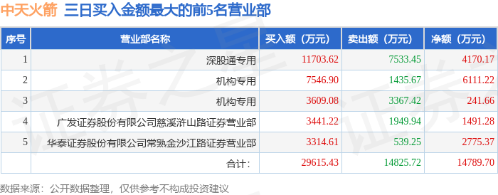 证券之星消息,沪深交易所2026年1月15日公布的交易公开信息显示,中天火箭(003009)因连续三个交易日内,跌幅偏离值累计达到20%的证券登上龙虎榜。此次是近5个交易日内第2次上榜。