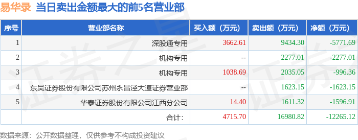 从龙虎榜公布的当日买卖数据来看,机构合计净卖出3983.08万元,北向资金合计净卖出5771.69万元。
