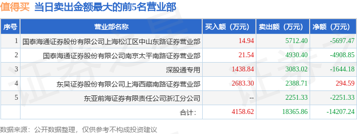 从龙虎榜公布的当日买卖数据来看,北向资金合计净卖出1644.18万元。上海中山东路、作手新一等知名游资榜上有名。(知名游资上海中山东路一般指国泰海通证券股份有限公司上海松江区中山东路证券营业部席位、知名游资作手新一一般指国泰海通证券股份有限公司南京太平南路证券营业部席位,根据市场资料整理,仅供参考)