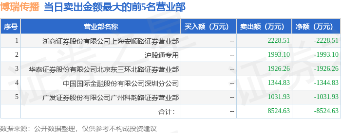 证券之星消息,沪深交易所2026年1月15日公布的交易公开信息显示,博瑞传播(600880)因有价格涨跌幅限制的日收盘价格跌幅偏离值达到7%的前五只证券登上龙虎榜。此次是近5个交易日内第2次上榜。