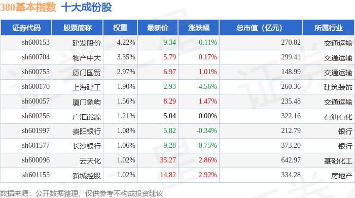 380基本(000128)指数十大成份股详情如下: