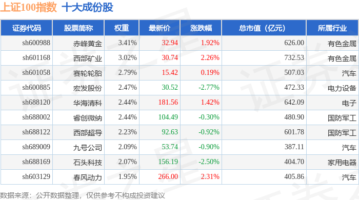 上证100(000132)指数十大成份股详情如下: