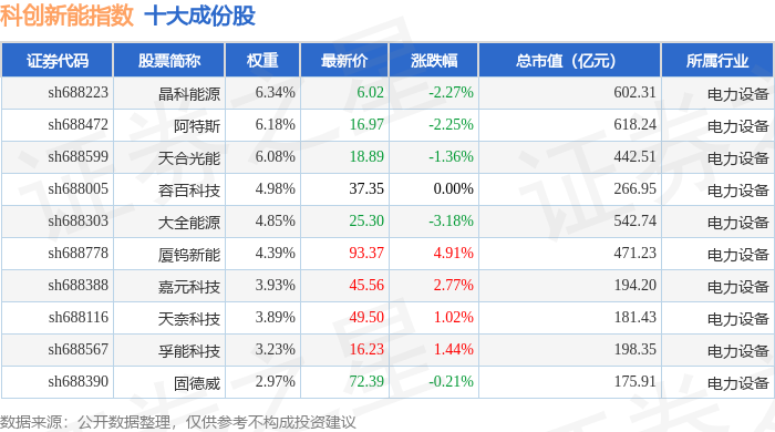 证券之星消息,1月15日,科创新能(000692)指数报收于1303.05点,涨1.46%,成交226.36亿元,换手率2.81%。当日该指数成份股中,上涨的有25家,先惠技术以13.14%的涨幅领涨,下跌的有15家,电气风电以4.22%的跌幅领跌。