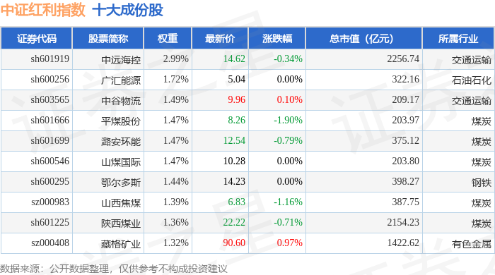 中证红利(000922)指数十大成份股详情如下: