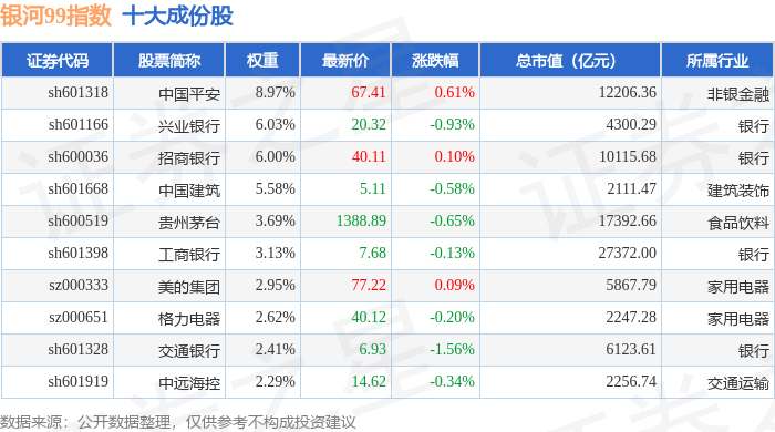 证券之星消息,1月15日,银河99(000959)指数报收于8185.09点,跌0.08%,成交3553.79亿元,换手率0.59%。当日该指数成份股中,上涨的有46家,立讯精密以7.07%的涨幅领涨,下跌的有53家,分众传媒以2.95%的跌幅领跌。