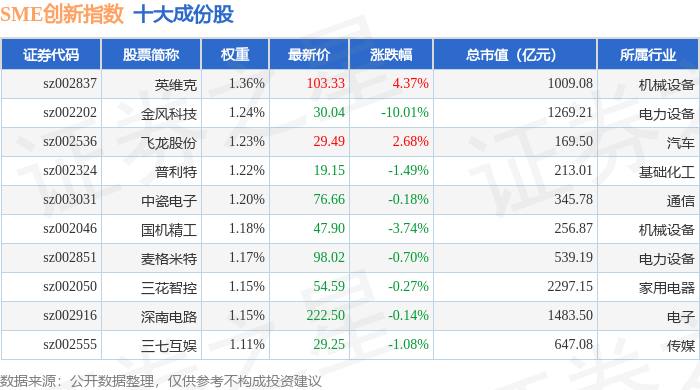 证券之星消息,1月15日,SME创新(399017)指数报收于5293.48点,跌0.02%,成交1666.96亿元,换手率3.55%。当日该指数成份股中,上涨的有49家,沃尔核材以10.01%的涨幅领涨,下跌的有49家,金风科技以10.01%的跌幅领跌。