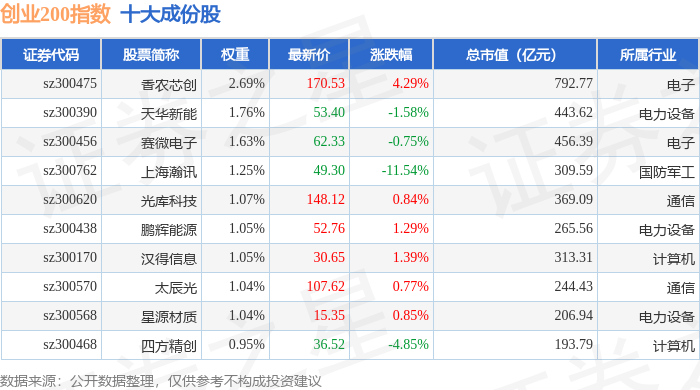 证券之星消息,1月15日,创业200(399019)指数报收于5087.12点,跌1.02%,成交2013.47亿元,换手率6.75%。当日该指数成份股中,上涨的有73家,上海新阳以16.6%的涨幅领涨,下跌的有126家,易华录以19.98%的跌幅领跌。