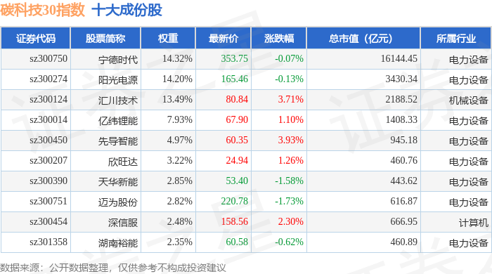 资金流向方面,碳科技30(399030)指数成份股当日主力资金净流出合计7074.68万元,游资资金净流出合计1.42亿元,散户资金净流入合计2.13亿元。成份股资金流向详情见下表:
