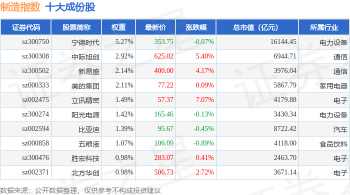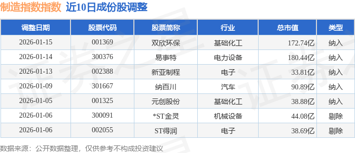近10日内制造指数(399233)成份股做了调整,新纳入了5只股票,剔除了2只股票。