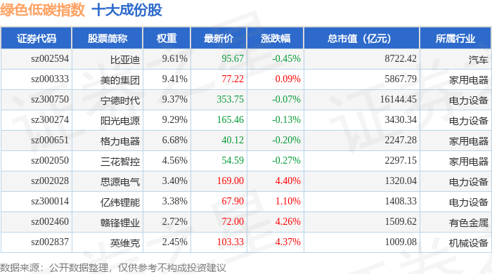 绿色低碳(399258)指数十大成份股详情如下: