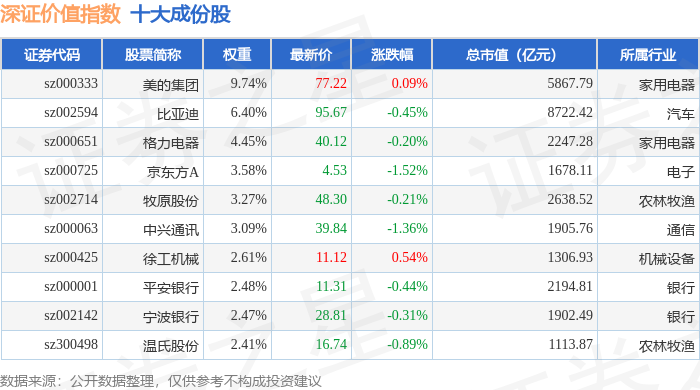 深证价值(399348)指数十大成份股详情如下: