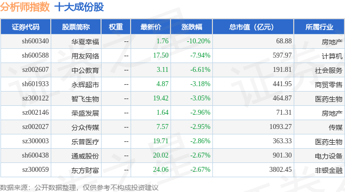分析师指数(399354)十大成份股详情如下: