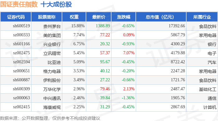证券之星消息,1月15日,国证责任(399369)指数报收于1555.81点,涨0.23%,成交1162.41亿元,换手率1.09%。当日该指数成份股中,上涨的有40家,奥特维以8.15%的涨幅领涨,下跌的有55家,用友网络以7.94%的跌幅领跌。