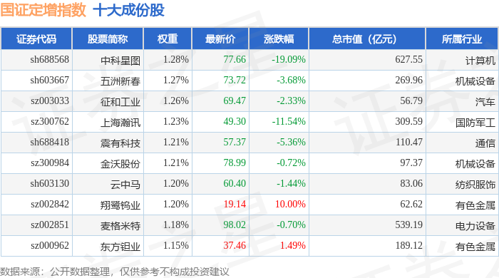 证券之星消息,1月15日,国证定增(399428)指数报收于4683.89点,跌0.94%,成交1083.56亿元,换手率4.95%。当日该指数成份股中,上涨的有42家,金安国纪以10.0%的涨幅领涨,下跌的有57家,中科星图以19.09%的跌幅领跌。