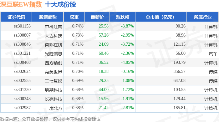 深互联EW(399677)指数十大成份股详情如下: