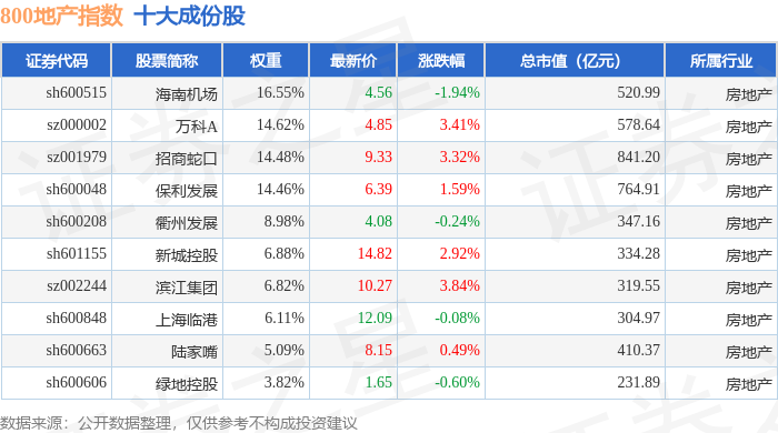 证券之星消息,1月15日,800地产(399965)指数报收于2677.9点,涨1.41%,成交62.93亿元,换手率1.52%。当日该指数成份股中,上涨的有7家,滨江集团以3.84%的涨幅领涨,下跌的有4家,海南机场以1.94%的跌幅领跌。