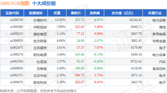 100ESGR(470027)指数十大成份股详情如下:
