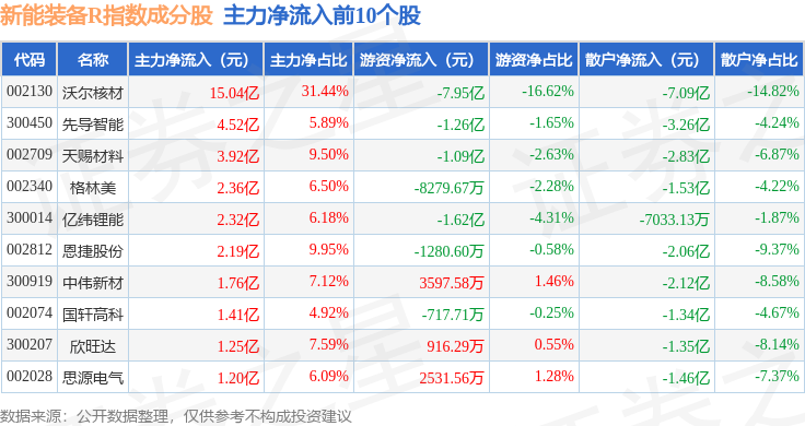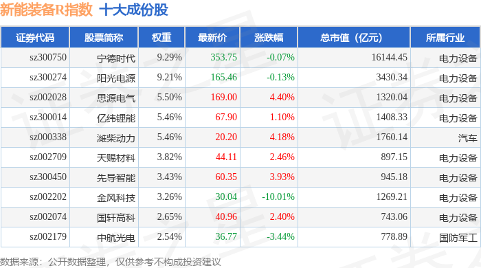 新能装备R(470043)指数十大成份股详情如下: