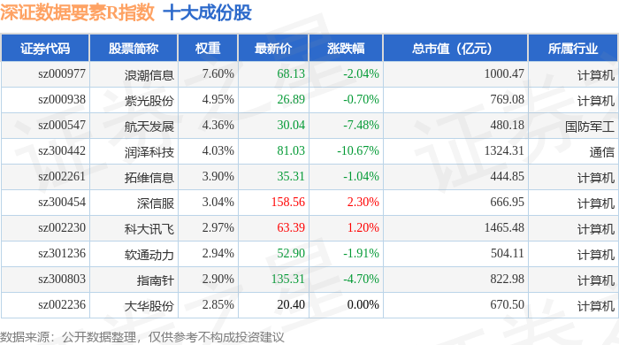 资金流向方面,深证数据要素R(470053)指数成份股当日主力资金净流出合计84.12亿元,游资资金净流入合计12.52亿元,散户资金净流入合计71.6亿元。成份股资金流向详情见下表: