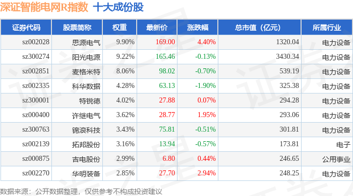 深证智能电网R(470054)指数十大成份股详情如下: