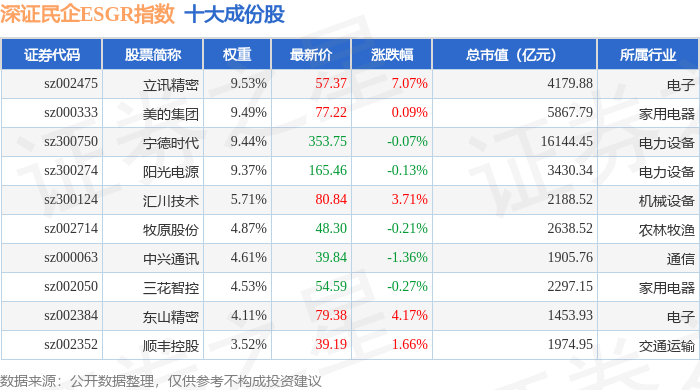 深证民企ESGR(470056)指数十大成份股详情如下: