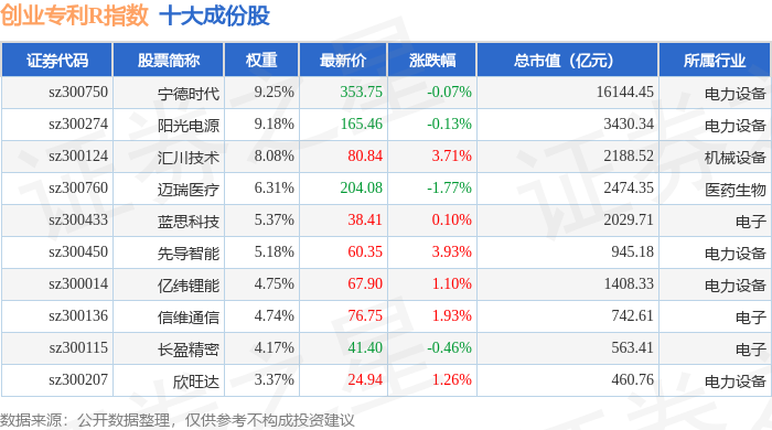 创业专利R(470068)指数十大成份股详情如下: