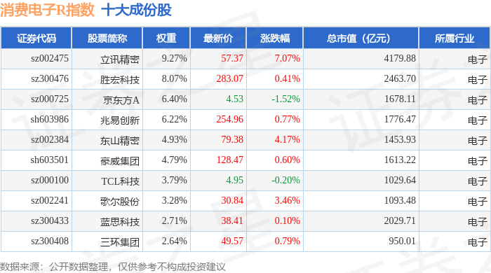 消费电子R(480030)指数十大成份股详情如下: