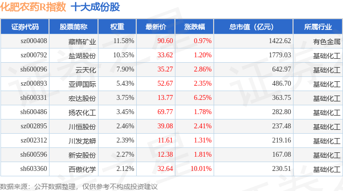 证券之星消息,1月15日,化肥农药R(480035)指数报收于2995.61点,涨2.51%,成交291.68亿元,换手率3.18%。当日该指数成份股中,上涨的有56家,百傲化学以10.01%的涨幅领涨,下跌的有4家,河化股份以3.15%的跌幅领跌。