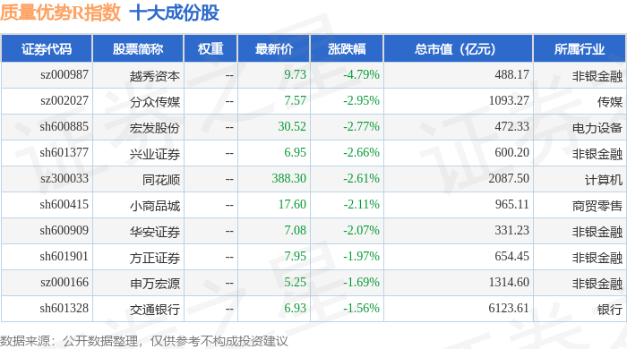质量优势R(489017)指数十大成份股详情如下: