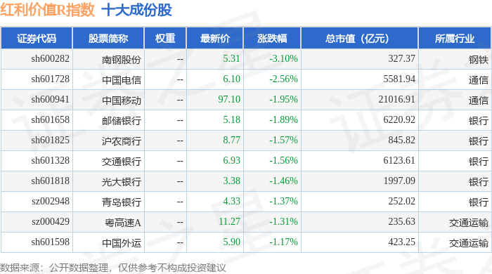 资金流向方面,红利价值R(489016)指数成份股当日主力资金净流出合计4.53亿元,游资资金净流入合计3.25亿元,散户资金净流入合计1.28亿元。成份股资金流向详情见下表: